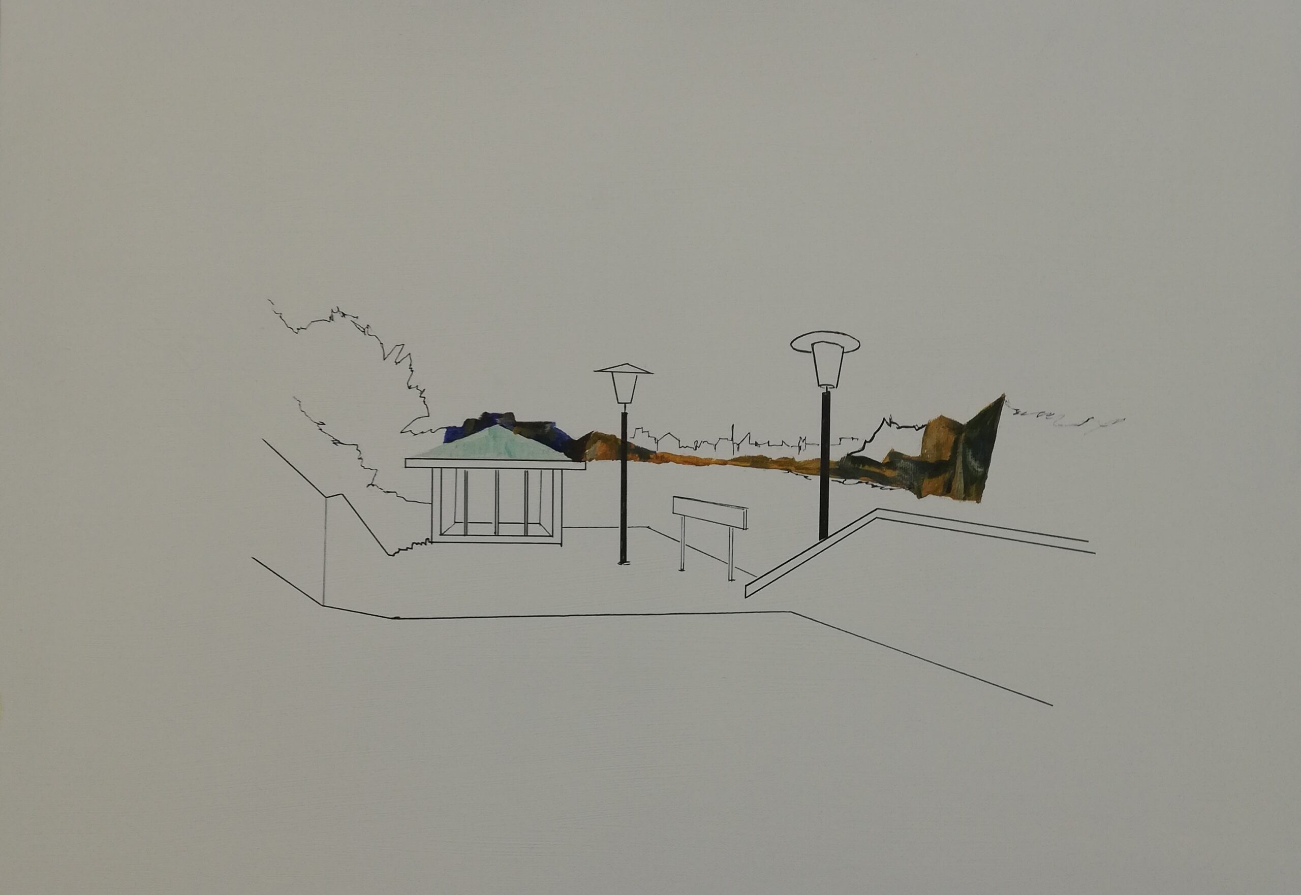 Von der Collage zum Entwurf eines auf das Wesentliche reduzierte Bild.
